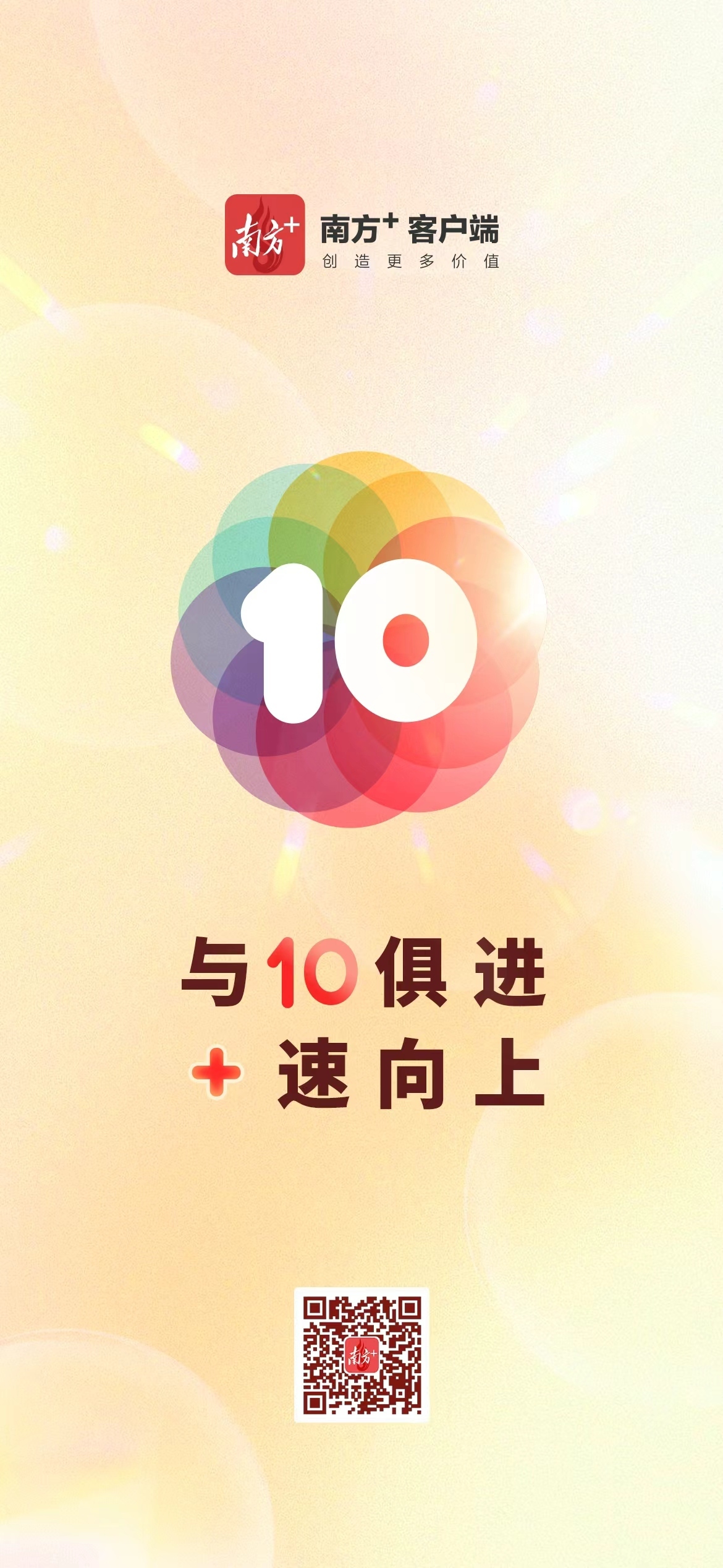 与10俱进,+速向上。南方+将继续与用户同心,与时代同行,用“坚守”作答为何出发,用“创新”应对前路挑战,在主流媒体系统性变革大潮中勇于变革、勇立潮头。南方+,欣欣向“融”,生生不息。
